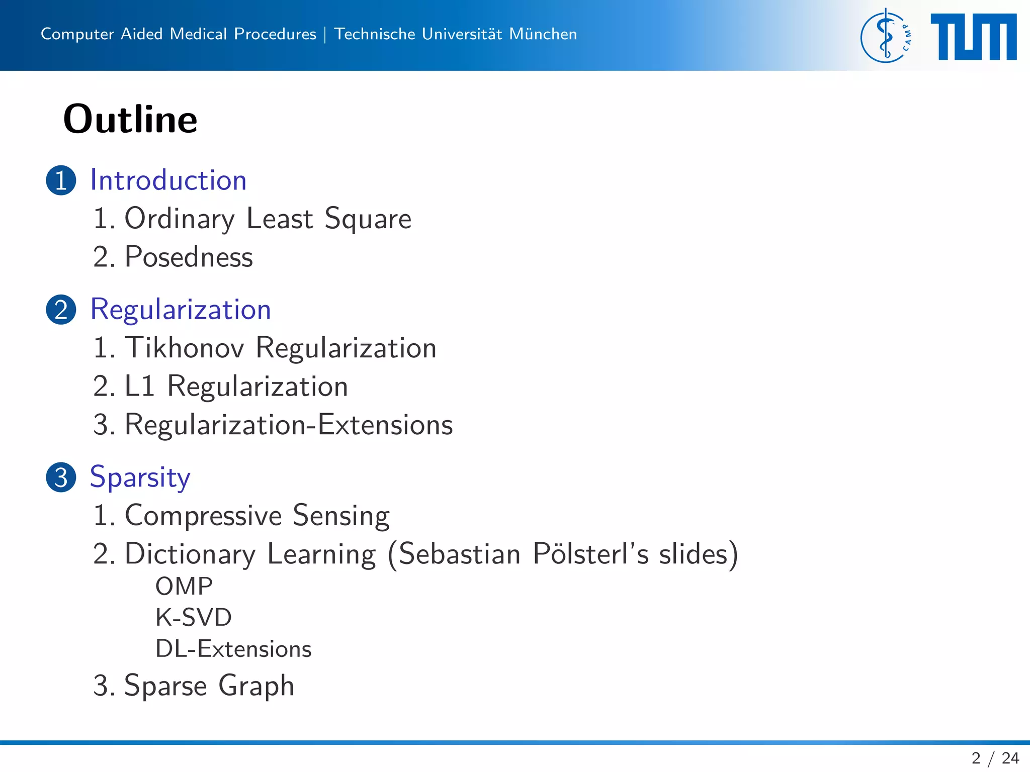 This document provides an introduction to sparse methods, including regularization techniques and compressive sensing. It discusses how regularization can address ill-posed problems by adding constraints that encourage simple or sparse solutions. Compressive sensing aims to reconstruct sparse signals from few measurements. Dictionary learning seeks an overcomplete basis to sparsely represent signals via linear combinations of atoms. Algorithms like orthogonal matching pursuit and K-SVD are described for solving dictionary learning problems. The document outlines extensions of these sparse methods.
