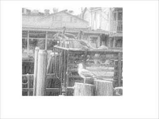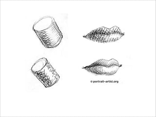 This document provides information about value, shading techniques, and the photorealist artist Chuck Close. It defines value as the appearance of lights and darks in a work of art, ranging from black to white with shades of gray. It lists common shading techniques like hatching, cross-hatching, stippling, blending, and scumbling. It discusses Chuck Close's grid technique for enlarging photographs and reducing each square to formal elements. It shows examples of Close's self-portraits and discusses how his style changed after becoming quadriplegic. It provides examples of students who used the grid technique in portraits from previous years.