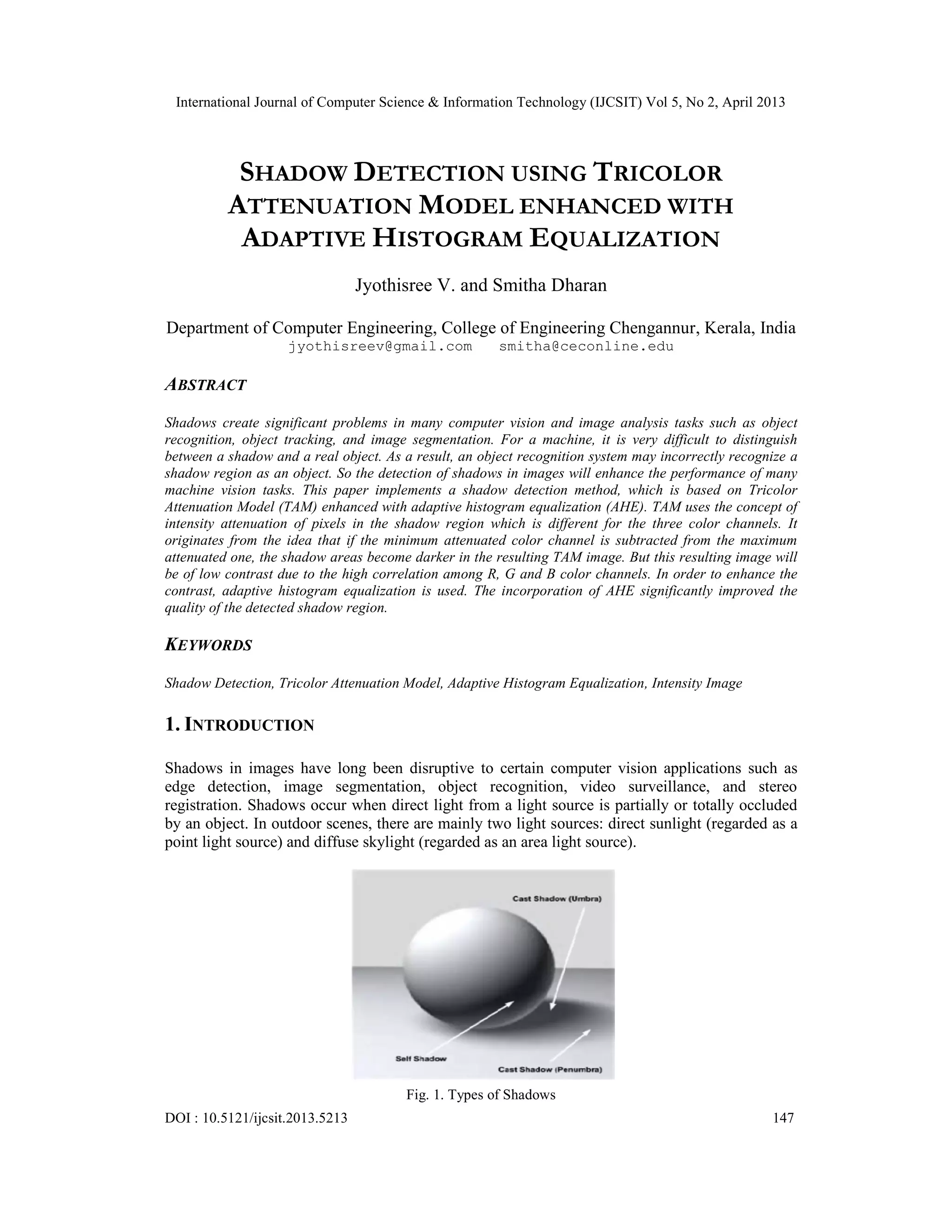 This paper presents a novel shadow detection method that combines the tricolor attenuation model (TAM) with adaptive histogram equalization (AHE) to enhance shadow detection in still images. By improving the contrast of the TAM image and integrating it with intensity images, the method effectively identifies shadow regions while avoiding false positives, thus enhancing the performance of various computer vision applications. The approach requires only one threshold for detection and eliminates the need for segmentation, making it more robust and easier to implement.