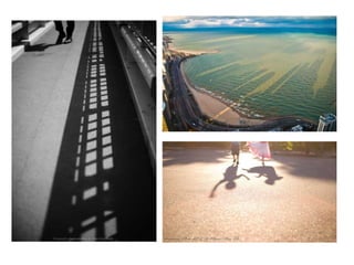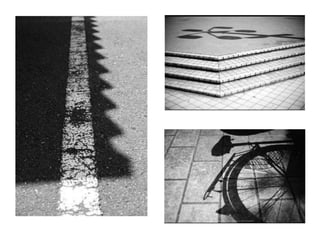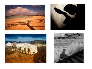This document provides instructions for a shadow photography project consisting of 3 final photos forming a triptych interpreting a song, poem, fairytale or quote. Students will take photos exploring shadows in 3 ways: 1) the shadow alone, 2) a piece of the subject and its shadow, and 3) the full subject and shadow. The final 3 photos are due December 11th and should combine techniques to illustrate the chosen work.