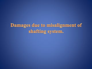 Shaft alignment is the process of positioning two or more rotating shafts so their centerlines are aligned when machines are operating normally. Misalignment can cause damage like abnormal bearing wear. There are several methods to check alignment including using a piano wire or line-of-sight with a telescope. For a piano wire method, the wire is tensioned and distances from it to bearings are measured. For a telescopic method, targets are mounted on stationary points and the telescope is used to align the rotating components by sighting through the targets. Proper shaft alignment is important for reducing vibrations and extending component life.