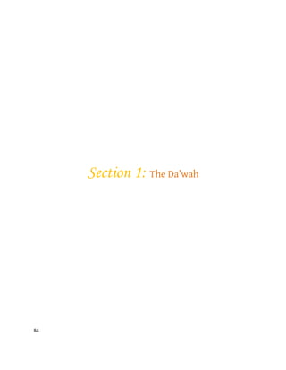This document provides information about the definition and virtues of da'wah (inviting people to Islam) according to Islamic sources. It defines da'wah linguistically and Islamically as calling people to Allah and making them better worshippers. The document explains that da'wah was the mission of all prophets, including Prophet Muhammad. It highlights verses from the Quran indicating the excellence of da'wah and its reward, even if one is not successful. The document aims to teach about the fiqh, or jurisprudence, of da'wah.