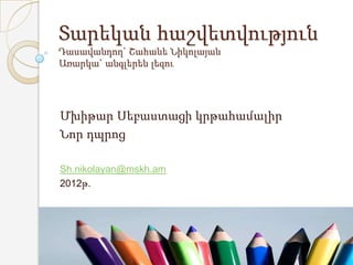 • Դասավանդելով 5 տարեկաններին`հիմնվել եմ 1-ին դասարանի օտար լեզվի