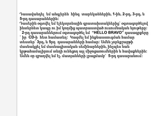 2-րդ դասարաններում օգտագործել եմ “HELLO BRAVO” դասագրքերը