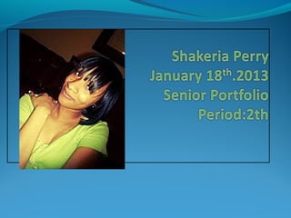 Shakeria Perry is proud to have graduated from high school and is excited about her journey. Her goals are to focus hard on her studies, walk across the graduation stage, and become a better student. She wants to become a pediatrician to help sick children. She has attended Clayton State University and hopes to complete her medical degree. Shakeria has included a cover letter and resume for a pediatrician position, detailing her education and experience as a babysitter. Her educational philosophy values the moral and character development imparted by teachers to create independent students.