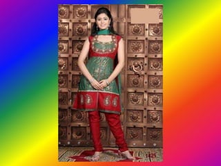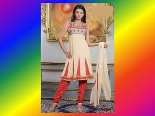 The document discusses the traditional South Asian dress known as shalwar kameez. It consists of loose trousers known as shalwar that are worn with a knee-length shirt known as a kameez. The document provides a website for those interested in learning more about fashion.