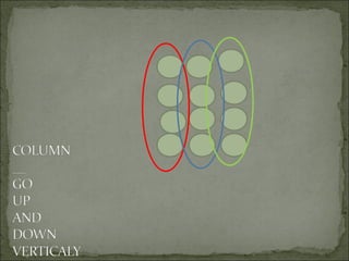 The document provides examples of creating arrays using circles arranged in rows and columns. It demonstrates writing repeated addition and multiplication number sentences to describe the arrays, with key numbers in red and products in dark blue. Examples include arrays with 3 rows of 5 circles and 2 rows of 6 circles. It also shows writing a word problem about the number of eyeballs for 7 people in a tent, and the corresponding multiplication number sentence.