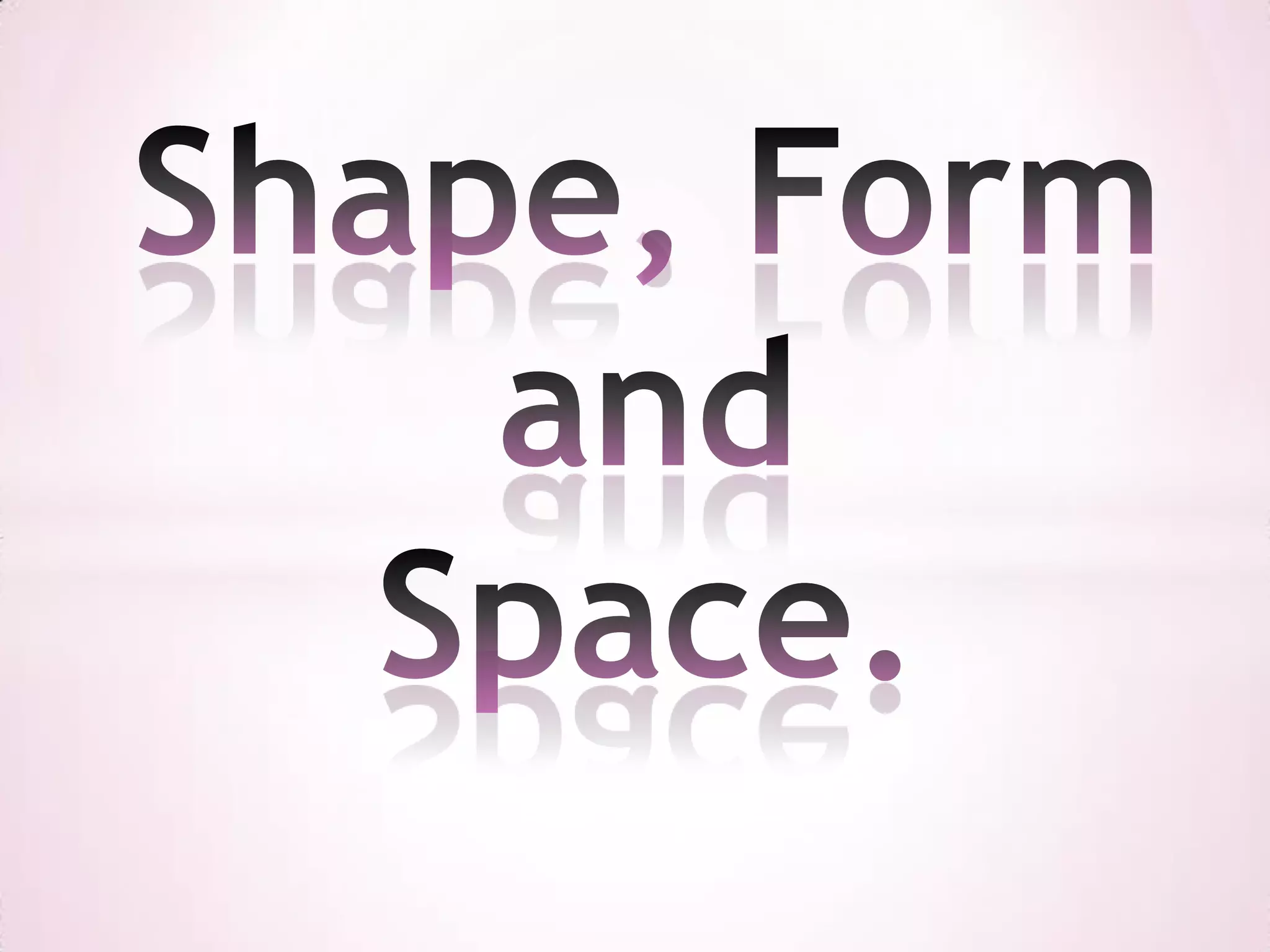 Shape, form, and space are key elements in art and design. Shape can be basic geometric objects or complex natural forms. Form/volume refers to the 3D space an object occupies. Space is the area within and between objects. Examples provided demonstrate how shapes combined can create forms with volume, and how interior spaces like buildings and sculptures can appear larger than expected through their shapes and forms.