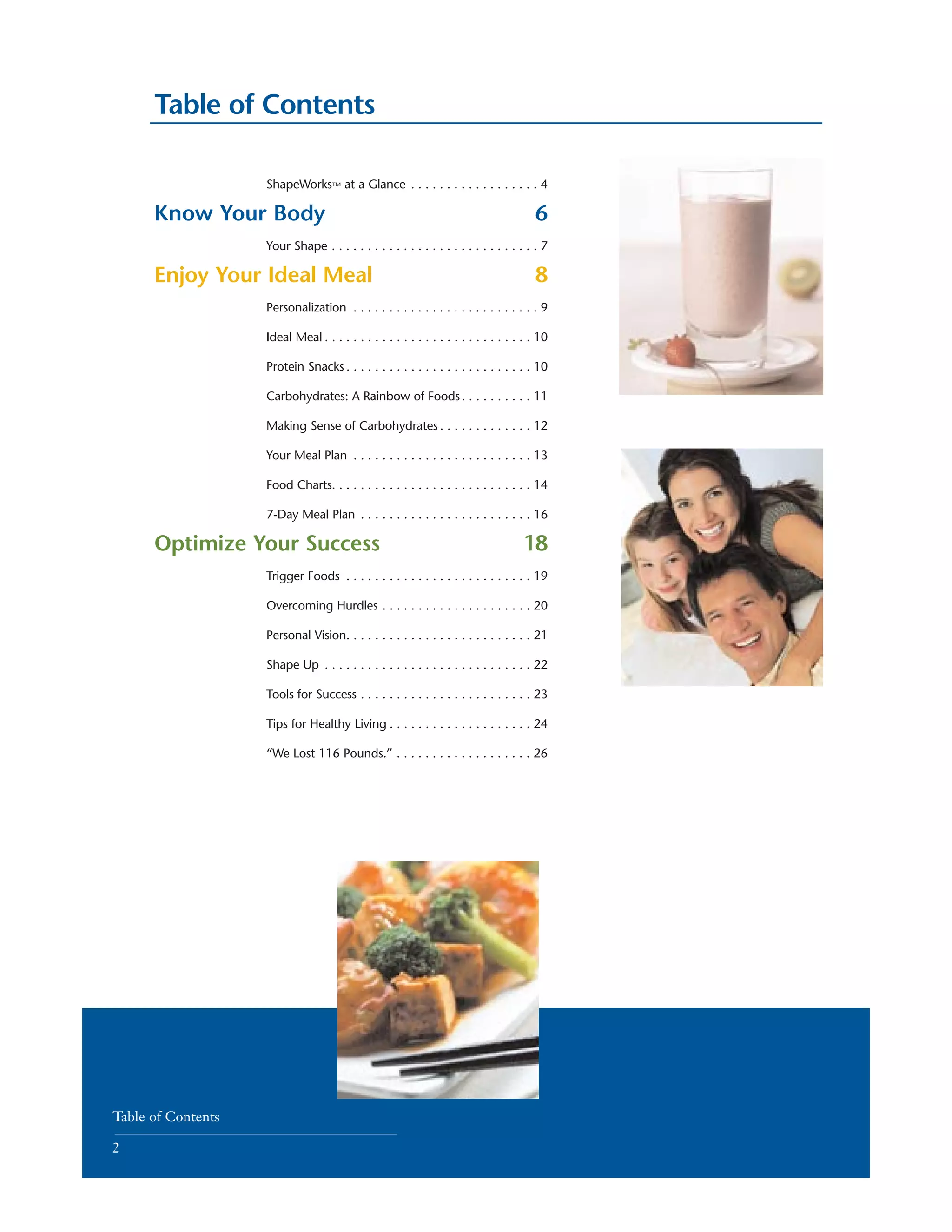 The document provides guidance on creating a healthy meal plan using the ShapeWorks program. It recommends eating 2 meal-replacement shakes per day along with protein snacks, and 1 healthy meal containing a variety of colorful fruits and vegetables. The meal plan focuses on choosing carbohydrates with a low glycemic index and load to control blood sugar and appetite. Colorful plant-based foods are emphasized to obtain important nutrients and antioxidants while managing calories and weight loss.