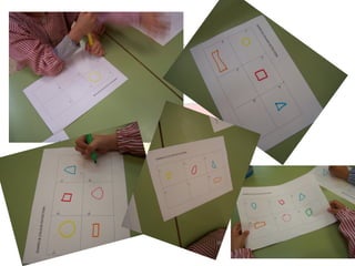 The document outlines a lesson plan for a shapes unit for 4-year-olds. The objectives are to identify basic shapes (circle, square, triangle, rectangle) and draw them following instructions. Children will also draw a monster using shapes as a fast-finishers activity. The plan includes daily routines, reviewing colors, introducing shapes, playing shape games, and a shapes & color dictation activity. Reflections note the children enjoyed learning colors in English and an online shapes game. Changes would use the monster drawing in the next class since no students finished early.