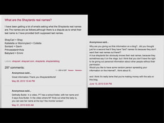 The document discusses ethical issues surrounding children's identity in digital media, focusing on how networked families collectively shape identity and the challenges faced when children transition into adolescence. It raises questions about privacy, ownership, and self-representation in the digital age. Key figures mentioned include ShayCarl and his family, highlighting the complexities of personal identity in the context of social media.