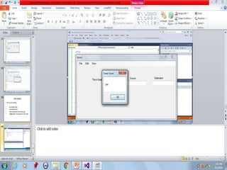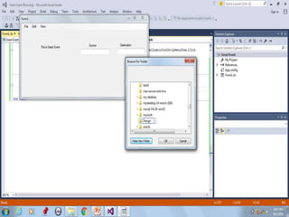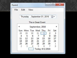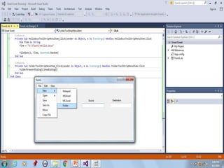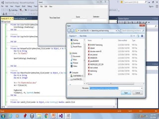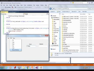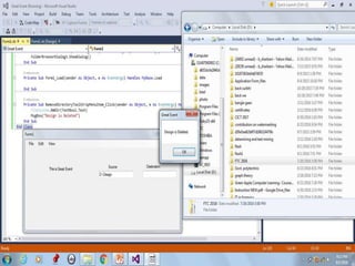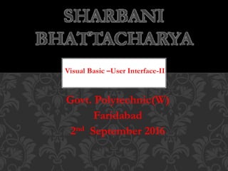 The document appears to be a lesson or instruction relevant to a Visual Basic user interface course conducted at a government polytechnic in Faridabad. It includes a code snippet demonstrating the use of DateTimePicker and MonthCalendar controls, as well as file copying functionality using FileIO. The closing remarks suggest gratitude for participation in the course.