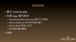 本文探讨了应用程序获利模式,包括商业模式画布、流量和营收的关系,并提供了优化营收的技巧。作者刘于逊及黄崇杰分享了Chocolabs的创业故事和未来愿景,鼓励团队创造价值并寻求增长。文中还涉及了招聘信息和与读者的互动环节。