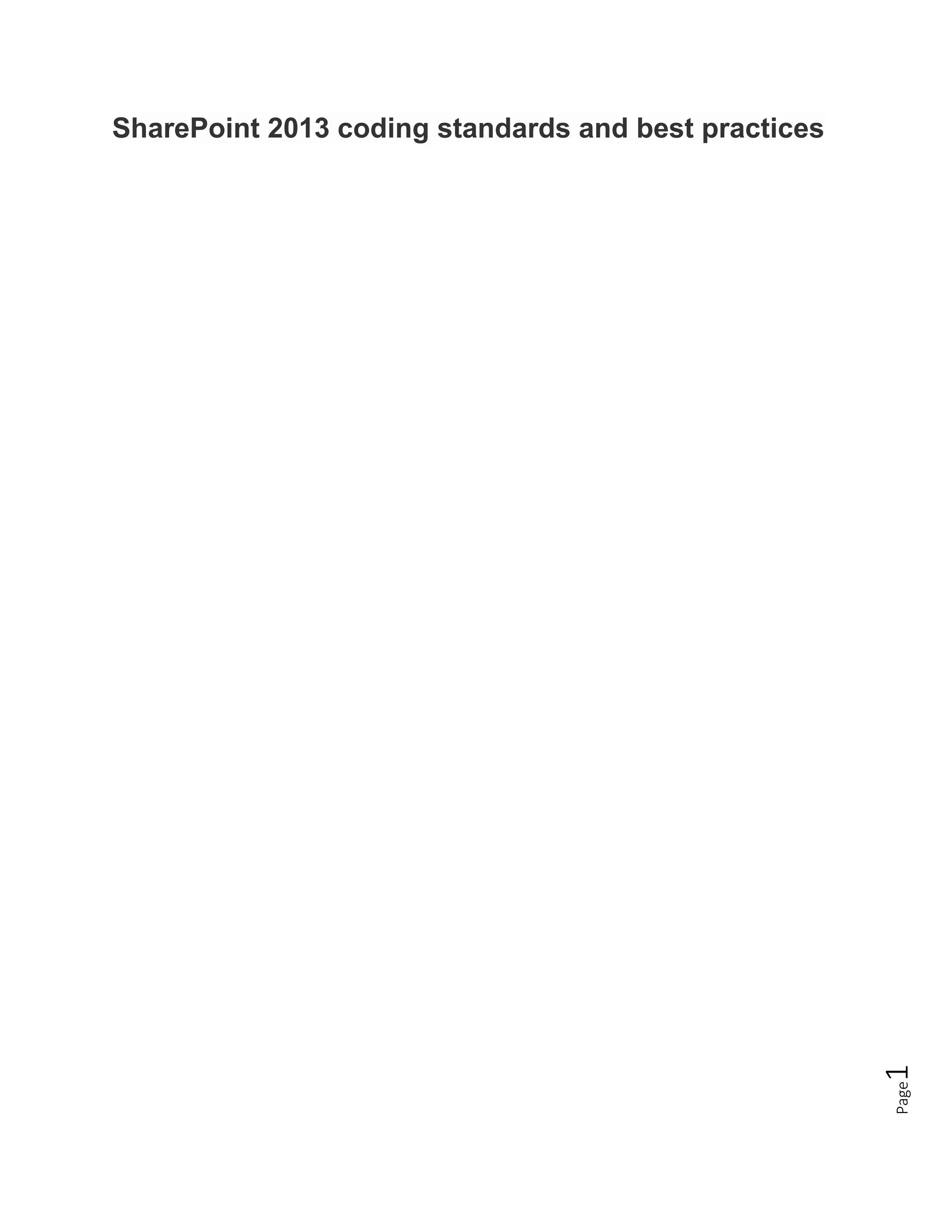 This document provides coding standards and best practices for developing SharePoint applications. It discusses efficient use of SharePoint data and objects, including caching objects and handling multithreaded environments. Specific recommendations are given for working with folders, lists, and deleting multiple versions of list items. The document also covers writing applications that scale to large numbers of users and using SPQuery objects. Best practices for disposing objects, exception handling, and accessing web and site objects are also outlined.