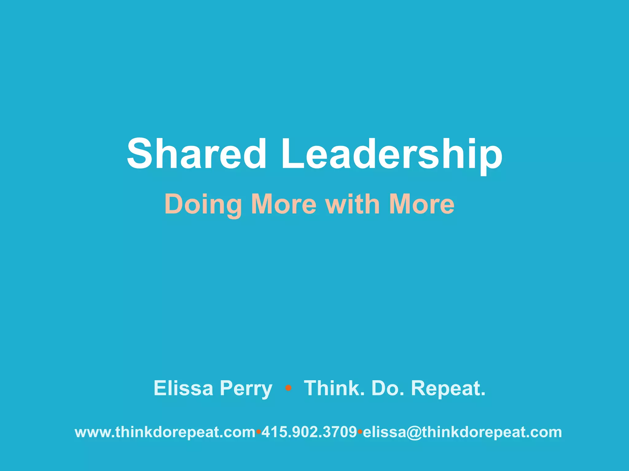 The document discusses shared leadership, defining it as distributing authority, responsibility, and accountability more broadly across an organization. It describes shared leadership existing on a spectrum from leader-led models to ones where many people exercise leadership as appropriate. Shared leadership can help organizations address adaptive challenges by developing leadership capacity in many. The benefits include a more empowered and engaged staff, improved decision-making, and a deeper leadership bench. Challenges include the significant time and financial commitment required.