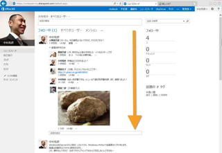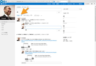 2012年2月2日のJapan SharePoint Group 大阪勉強会用スライドです。SharePoint 2013の「ソーシャル」機能について、ごくごく基本的な「つぶやき(マイクロブロギング)」「フォロー」「メンション」「タグ」など部分の動作をスクリーンショット中心でまとめています。補足を含めて詳細は http://sharepointmaniacs.com/archives/4524
