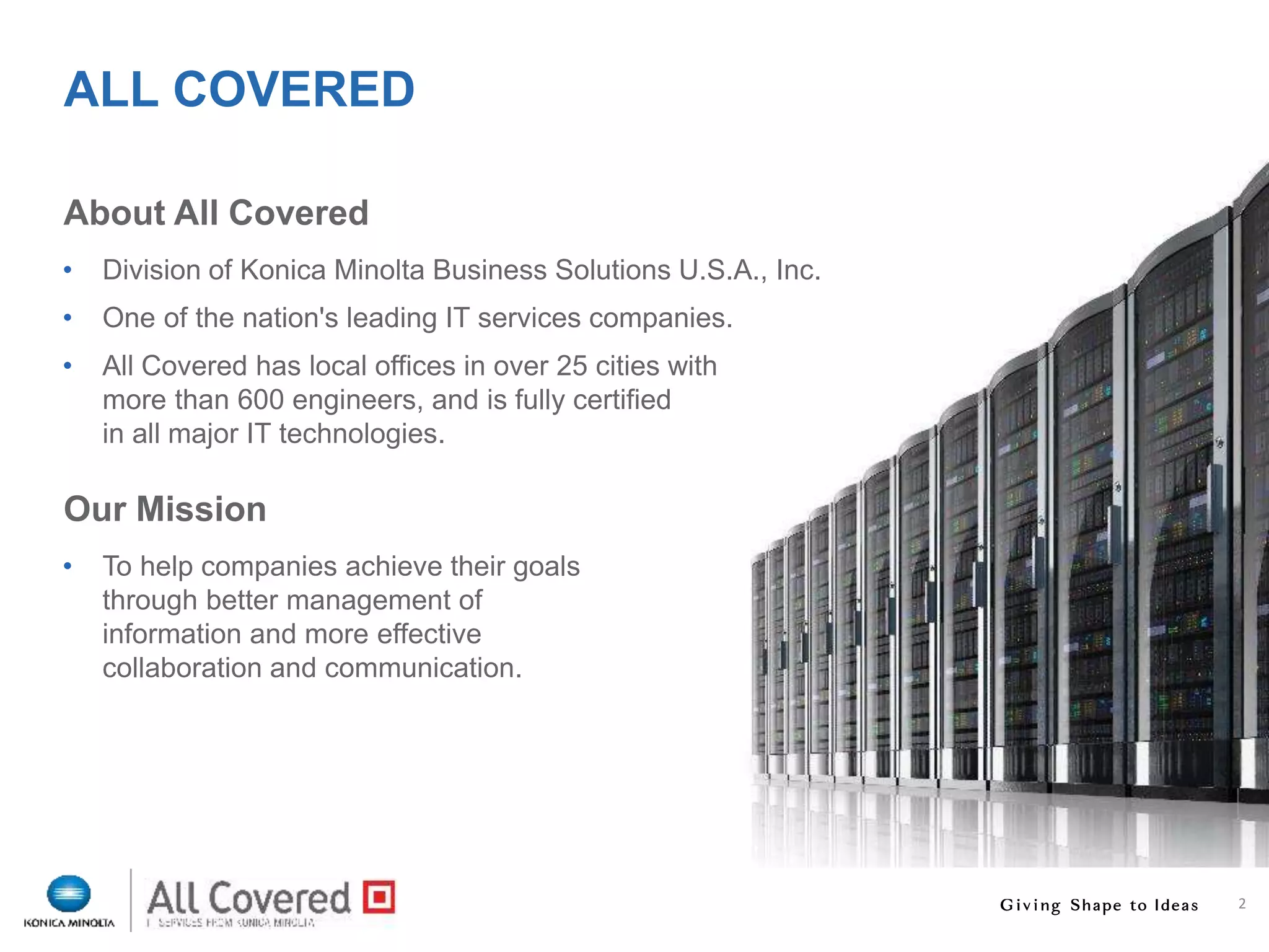 This document provides an overview of Microsoft SharePoint presented by Travis Krampy of All Covered. It discusses All Covered's services and mission to help companies manage information and collaborate more effectively. It then highlights common business challenges such as document management, collaboration, decision making, and complex processes that SharePoint can address. Examples are given of how SharePoint has helped customers through solutions involving document management, collaboration, form development, project management, and migration. The presentation concludes by demonstrating SharePoint's capabilities.