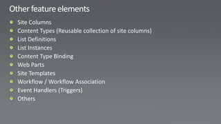 This document provides an overview of how to use Team Foundation Server (TFS) to manage the development lifecycle of SharePoint solutions. It describes how developers can use TFS for source control, work item tracking, building and deploying solutions, running tests, and releasing to staging and production environments. Key aspects covered include integrating Visual Studio projects with TFS, running daily builds, testing using virtual machines, and deploying solutions using WSP packages.