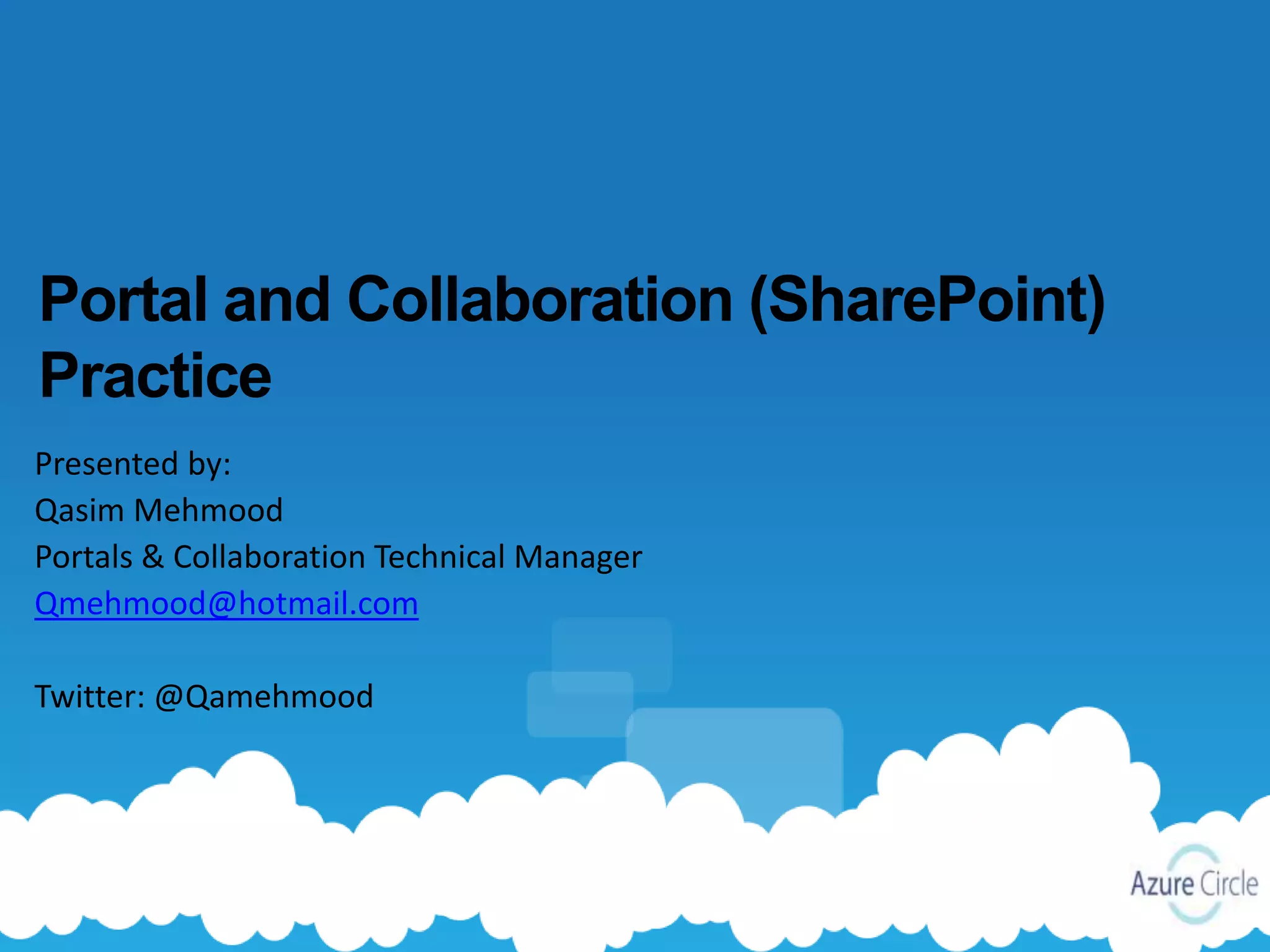 - Key elements include defining practice areas and relationships, developing a mentoring hierarchy with mentors and buddies, and creating a community portal for logging issues, finding resolutions, and communicating solutions.