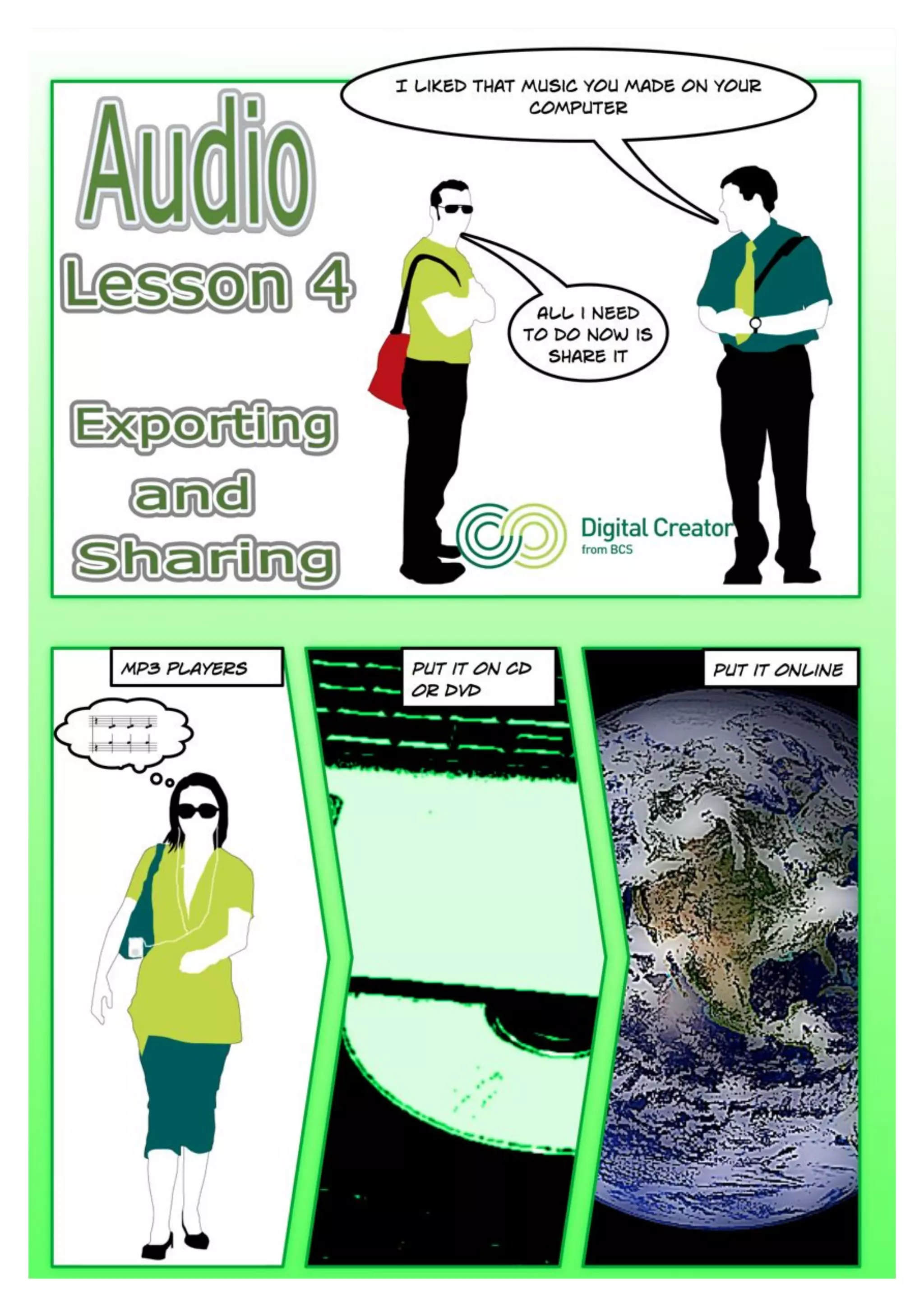 Tips on how to export audio and put it on your MP3 player or a CD from Digital Creator by BCS, the Chartered Institute for IT.