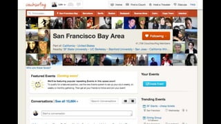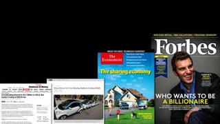 The document discusses the rise of the sharing economy. It notes that sharing services now reach 40,000 people per day across 30,000 cities and 192 countries. The sharing economy has grown due to factors like the recession, excess waste and unused goods, information overload, and a new generation that values sustainability and community over consumerism. Examples mentioned include crowdfunding sites like Kickstarter, local marketplaces like Etsy, and communities formed around sharing items, skills and physical spaces. The document argues this shift represents more than a fad and will continue transforming economic and social systems.