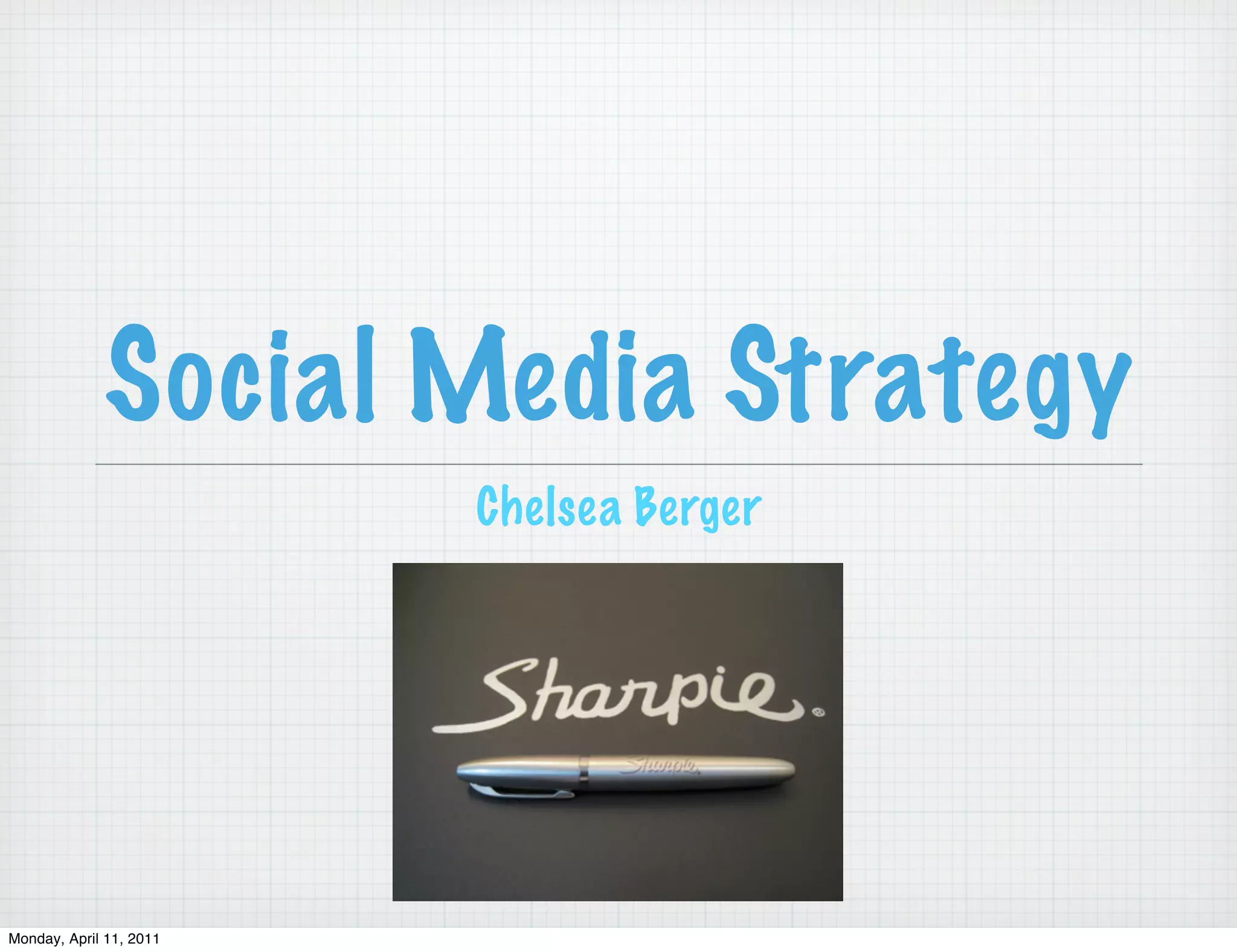 The document outlines a proposed social media strategy for Sharpie to increase engagement. It suggests having users fill in the blank "Sharpie equals __" on various social media platforms. Other tactics include contests with hidden serial numbers, guerilla marketing with giant markers, and blogger outreach. Metrics like increased fans, likes, followers, and site traffic would measure the strategy's success. The timeline calls for constant updates to keep users interested. Resources would be distributed across various paid and owned channels.