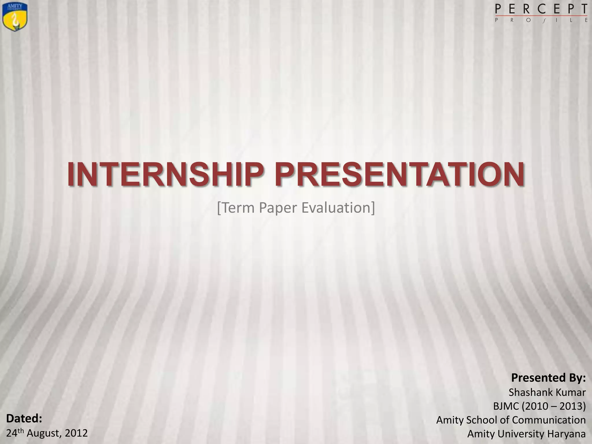 Shashank Kumar completed a month-long internship at Percept Profile, a communications consultancy firm. During the internship, he gained experience in new client development, client servicing, and working with clients in various sectors such as automotive, luxury goods, and media & entertainment. He learned about the public relations communication cycle and developed skills in client brief analysis, strategy development, press release writing, and media relations. The internship helped Shashank understand the operations of a PR agency and improved his communication, presentation, and networking abilities.