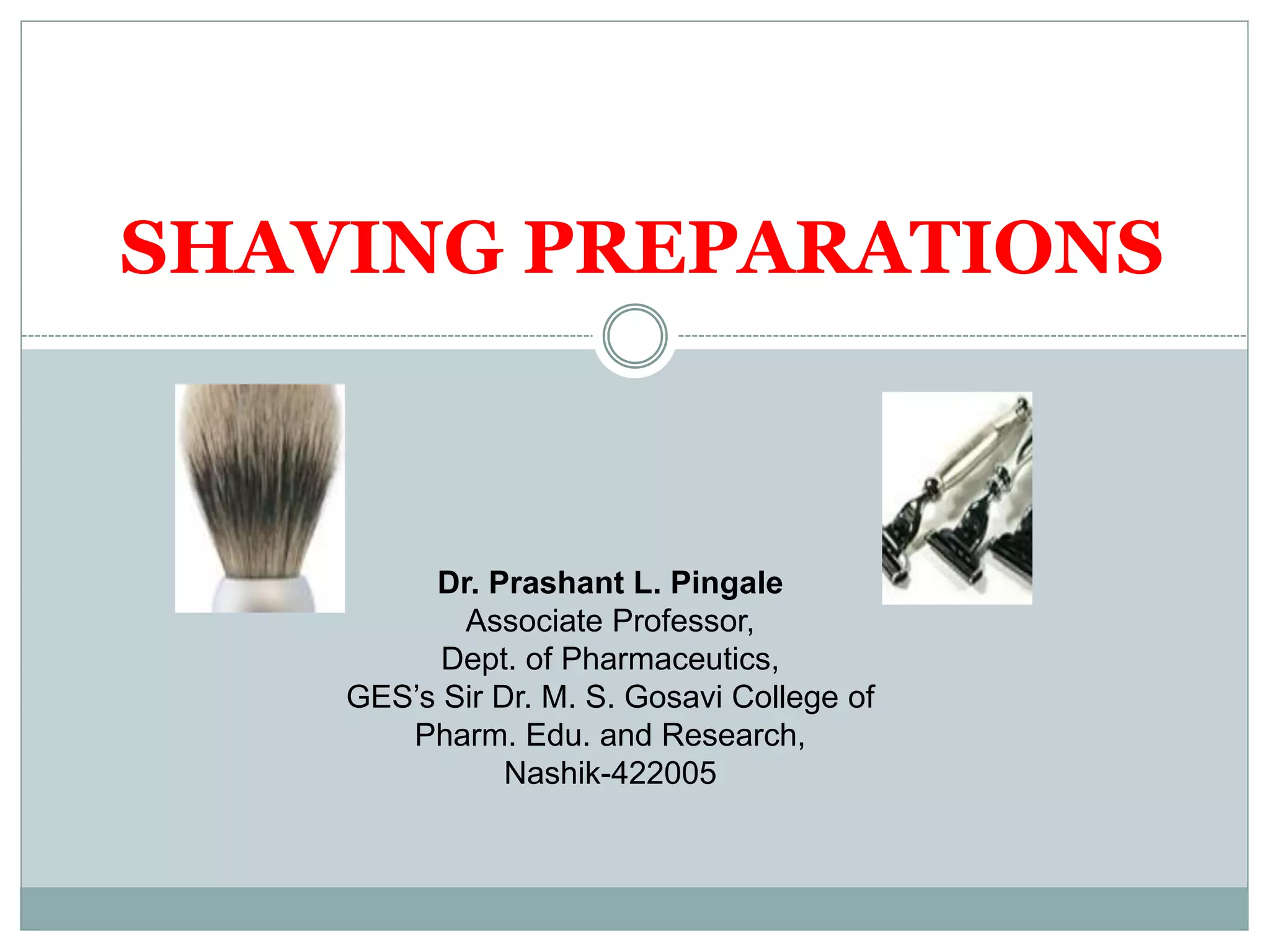 This document provides information on various shaving preparations, including definitions, properties, types of products, and formulations. It discusses preparations used before shaving such as shaving soaps, creams, gels, and aerosol products. It also covers after shave preparations and types including alcohol-based, lotion-based, and antiseptic aftershaves. Key ingredients and formulations for different product types are presented along with considerations for stability, skin feel, and other qualities. Marketed examples of various shaving products are also mentioned.