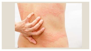 This document discusses Sheetapitta, Udarda, and Kotha, which are skin conditions in Ayurveda. It covers the causes, symptoms, pathogenesis, and treatments. The causes are primarily improper diet, cold exposure, and certain diseases. The symptoms vary between the conditions. The pathogenesis involves vitiation of vata, kapha, and their movement into the skin and blood. Treatments include purification therapies, herbal formulas, oils, and lifestyle modifications.