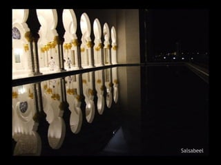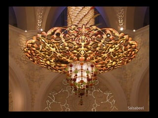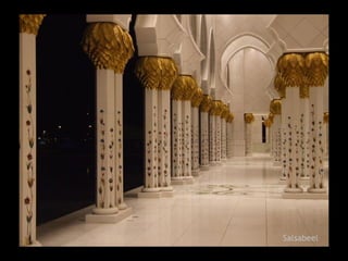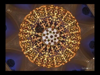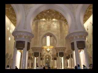 The Sheikh Zayed Mosque in Abu Dhabi covers an area of 22,000 square meters, uses 33,000 tons of steel and 120,000 cubic meters of concrete, with 7000 foundation piles.