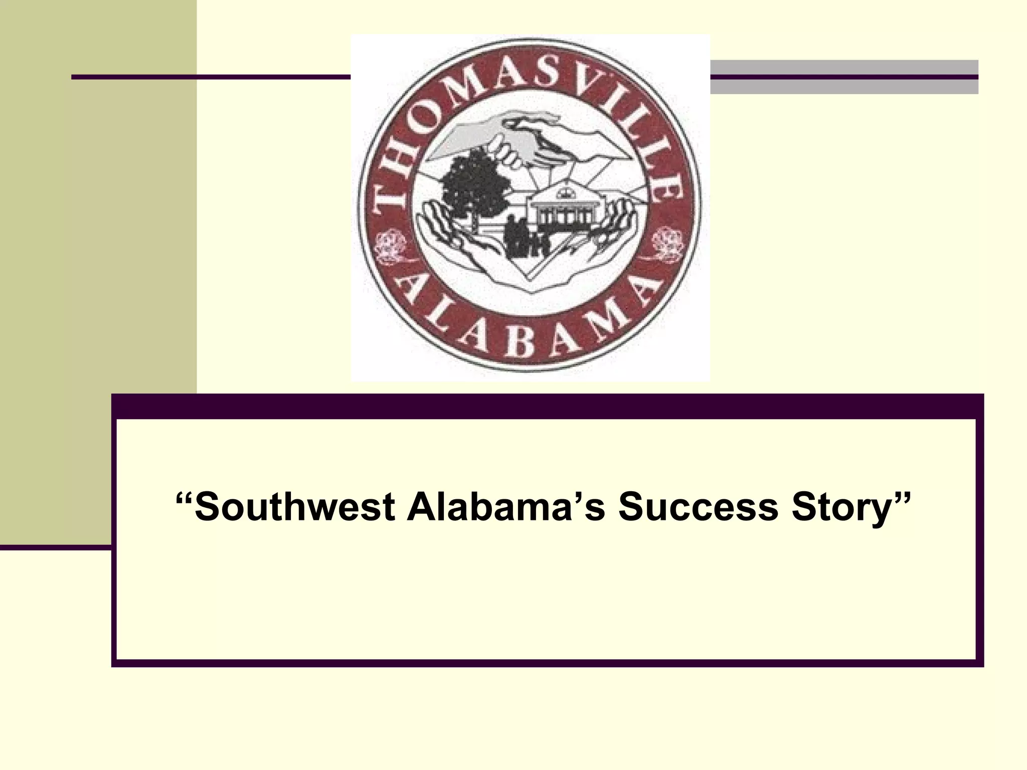 The document discusses the revitalization efforts and economic development in Thomasville, Alabama over the past decade. Phase III of downtown revitalization was completed with $2.5 million invested in Phases I and II. Unique residential and mixed-use developments were constructed. Annual supplier conferences hosted by Boeing brought local businesses together with large companies. A new civic center and industrial park were built, and Thomasville High School added a welding lab. Future plans include a $25 million medical center. The document promotes Thomasville as a success story and provides contact information for more details.