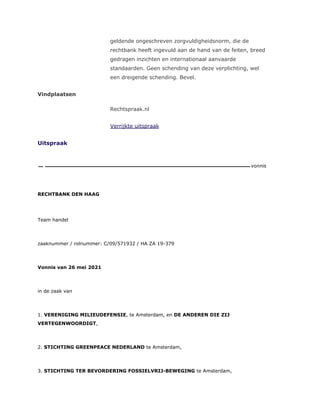 stellingnames van Milieudefensie c.s. ongegrond is verklaard;