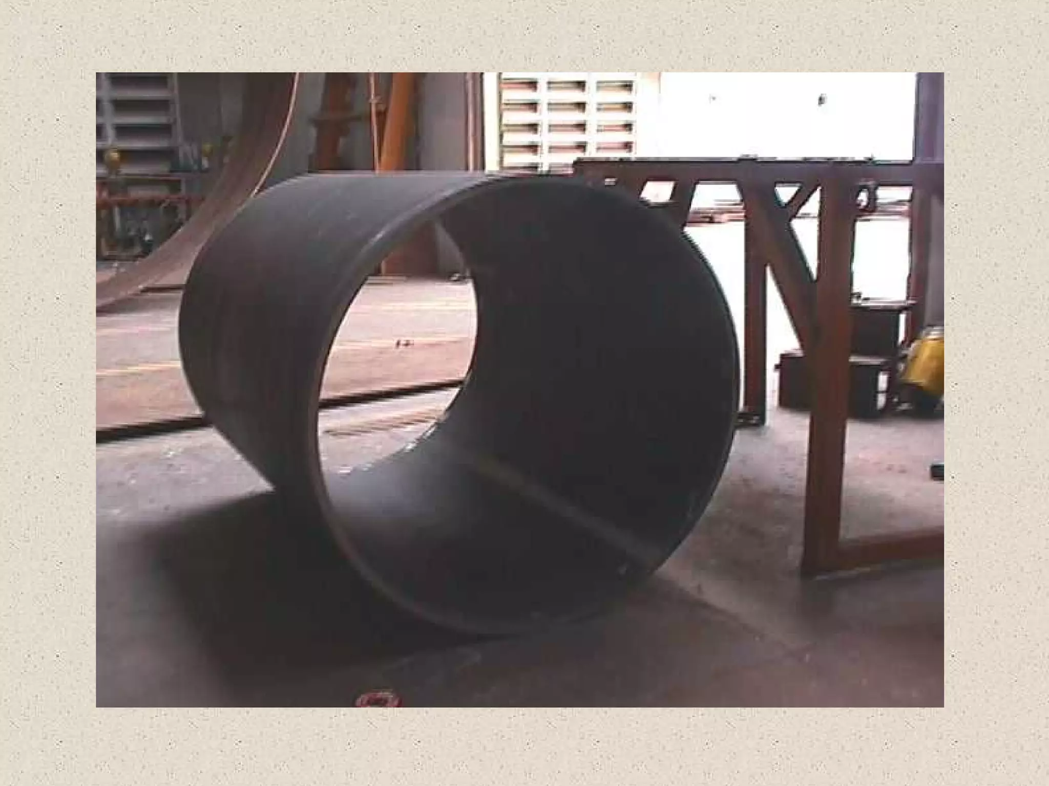 This document provides procedures and guidelines for marking, cutting, checking, and rolling of shell plates. It discusses marking plates with identification parallel to the rolling direction. It also summarizes methods of rolling including pinch rolling, pyramid rolling, cold rolling, warm rolling, and hot rolling. The document outlines tolerances for checking shell ovality, circumference, peak in/out, and skew. It emphasizes the importance of good engineering practices like checking diagonals and templates.