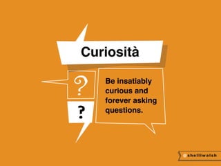 This document provides tips and strategies for improving creativity. It discusses how lateral and vertical thinking can be developed through practices like copying works to build knowledge, keeping an ideas wall, and voicing ideas publicly. Regular creative exercises are recommended to train the brain, such as listing ideas daily or asking questions. Being in the right relaxed state and removing distractions can also help spark creativity.