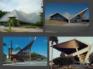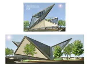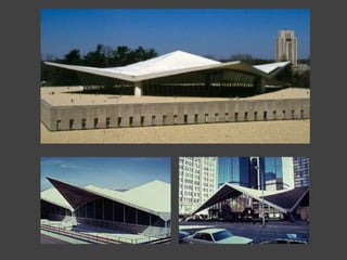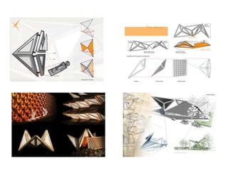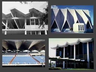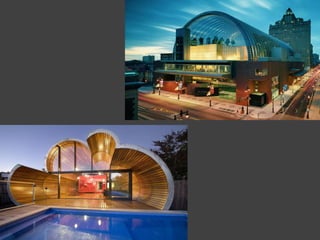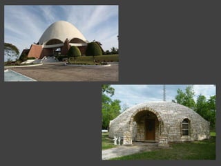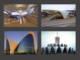 Shells can be classified in several ways, including by the material used and thickness. Thin concrete shells are lightweight structures made of reinforced concrete without internal supports. Common thin concrete shell types include barrel shells, folded plates, hyperbolic paraboloids, domes, and translation shells. Barrel shells carry loads longitudinally and transversally, while domes provide a strong, stiff structure with double curvature. Thin concrete shells offer wide open interior spaces but require sealing and ventilation to prevent moisture issues.