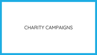 This document discusses charity campaigns and advertising techniques. It provides information on: