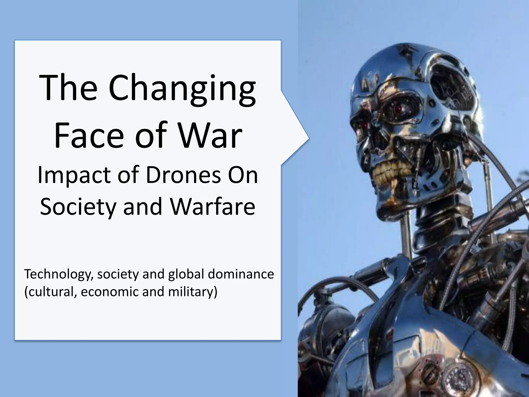2) Drone warfare may change views of war by distancing soldiers and making killing impersonal, as well as desensitizing society to costs of war.