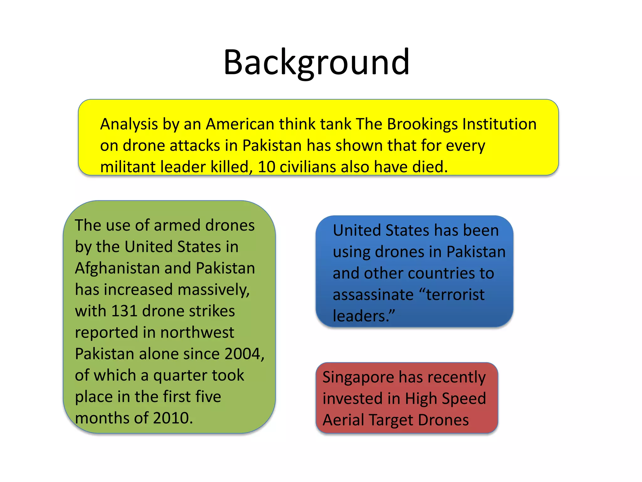 1) Drones have increased massively in use by the US in Afghanistan and Pakistan, killing many militants but also civilians. Laws of war have not caught up with drone technology.