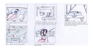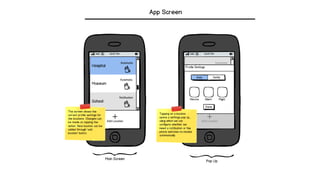 The document proposes an app called "Shh..!" that automatically changes a phone's profile based on the user's location to prevent disturbances in places like hospitals, libraries, meetings, and on airplanes. It would use GPS to detect the user's location and switch the phone to silent/vibrate mode, then back again when leaving. User studies found many forget to silence phones in important places. The app could partner with companies and organizations and offer rewards for its use in appropriate locations. It aims to help enforce rules, avert accidents, and be simple for users.