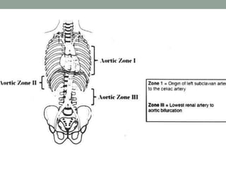 REBOA is the placement of a balloon in the aorta to control hemorrhage from the abdomen or pelvis. It is indicated for trauma with suspected bleeding below the diaphragm and can control bleeding until surgery.