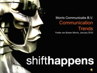 This document discusses the rapid changes in communication and technology, highlighting the immense growth of information and the shifting dynamics in employment and social media. It presents statistics on population, job markets, and digital trends, indicating that students are being prepared for future roles that are not yet defined. The conclusion emphasizes the importance of social media and peer recommendations over traditional advertising in the evolving landscape of consumer behavior.