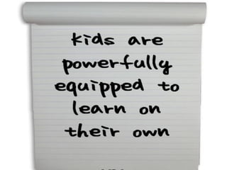 The document discusses the implications of changing technologies and learning styles for modern schools. It notes that while technology drives many changes, classrooms must respond to today's learners' needs. The author provides examples of student-created videos and websites to illustrate how learning is now participatory and connected beyond the classroom. The document argues schools need to embrace new forms of learning and see students as content experts in their own right.