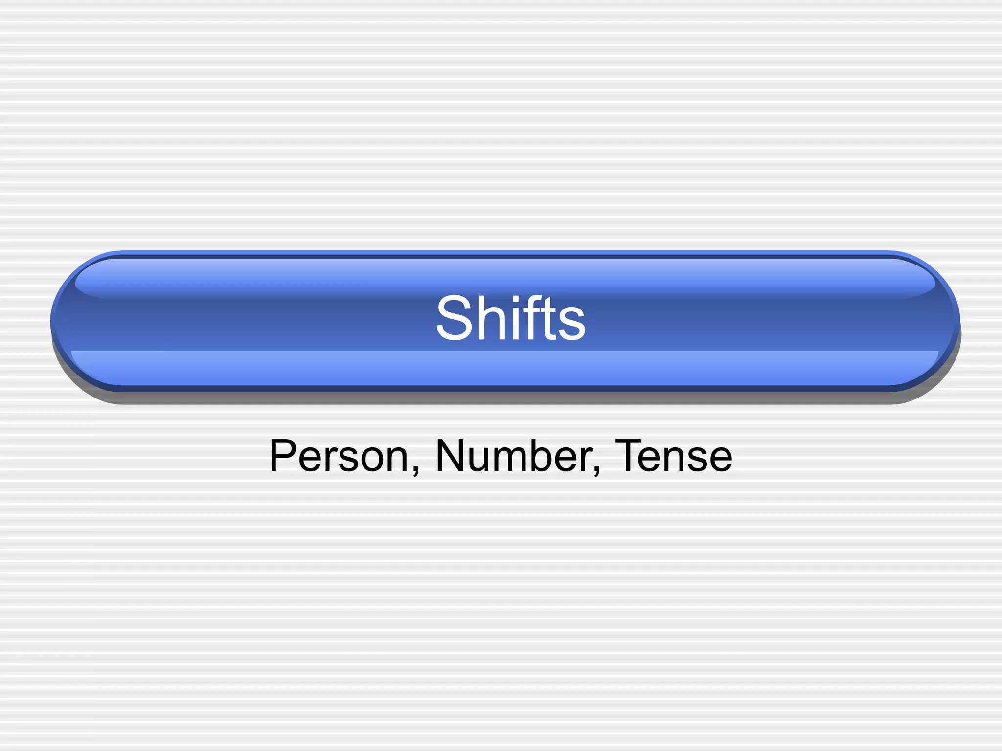 The document discusses different types of shifts to avoid in writing, including shifts in person, number, and tense. Shifts occur when a writer changes the point of view, number of items, or verb tense within a sentence or paragraph. This can cause confusion. The document provides examples of shifts and corrected versions without shifts. Maintaining parallel structure and consistency is important for clear writing.