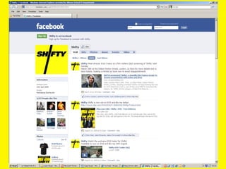 This document provides information about the 2008 low-budget British film "Shifty" including its production, distribution, marketing, and reception. It was made through the UK Film Council's Microwave scheme which funds films with budgets under £100,000. Though the film found success in UK theaters and received international distribution, its marketing relied heavily on viral campaigns and targeting niche audiences through unconventional methods like pirate radio and social media. The case study examines how "Shifty" was able to achieve success on a minimal budget through innovative distribution and audience engagement strategies.
