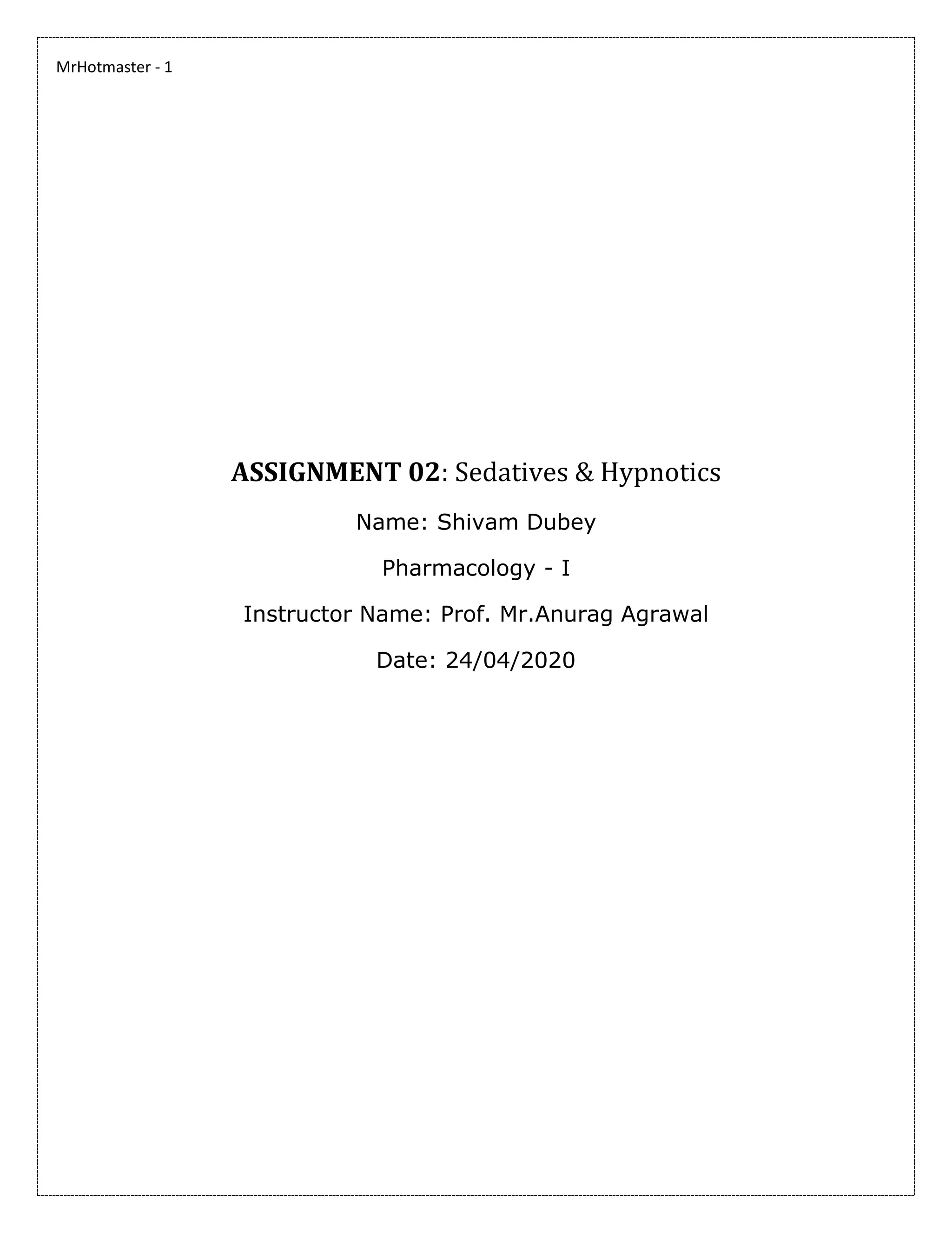 The document provides an overview of sedatives and hypnotics, detailing their definitions, mechanisms of action, classifications, pharmacological actions, therapeutic uses, and potential side effects. Sedatives calm without inducing sleep, while hypnotics promote sleep and can lead to anesthesia at higher doses. It also discusses the implications of various anxiolytics, particularly benzodiazepines and barbiturates, and their risks, such as dependence and withdrawal symptoms.