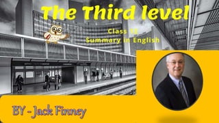 The document discusses a short story by Jack Finney called "The Third Level" where the main character Charley discovers a secret third level at Grand Central Station that transports him to 1894. On this third level, Charley encounters people in old-fashioned clothing and interacts with the environment and architecture from the 1800s. The story follows Charley as he tries to understand how he accessed this third level and what it could mean for escaping from the pressures of modern life.
