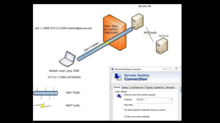 This document summarizes how SSH can be used to compromise security in several ways: