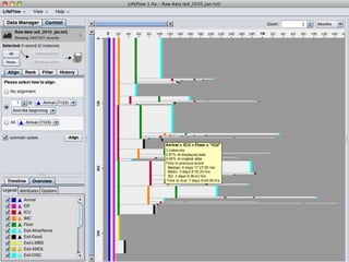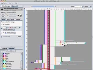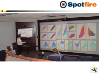 The document focuses on information visualization in medical informatics and highlights various design issues, data types, and visualization strategies used in healthcare. It discusses challenges in creating meaningful visual displays of massive data, interaction designs, and the application of visualization tools like treemaps and network analysis to improve healthcare operations and patient management. Additionally, it touches on significant acquisitions in the visualization space and references ongoing academic research and projects at the University of Maryland's Human-Computer Interaction Lab.