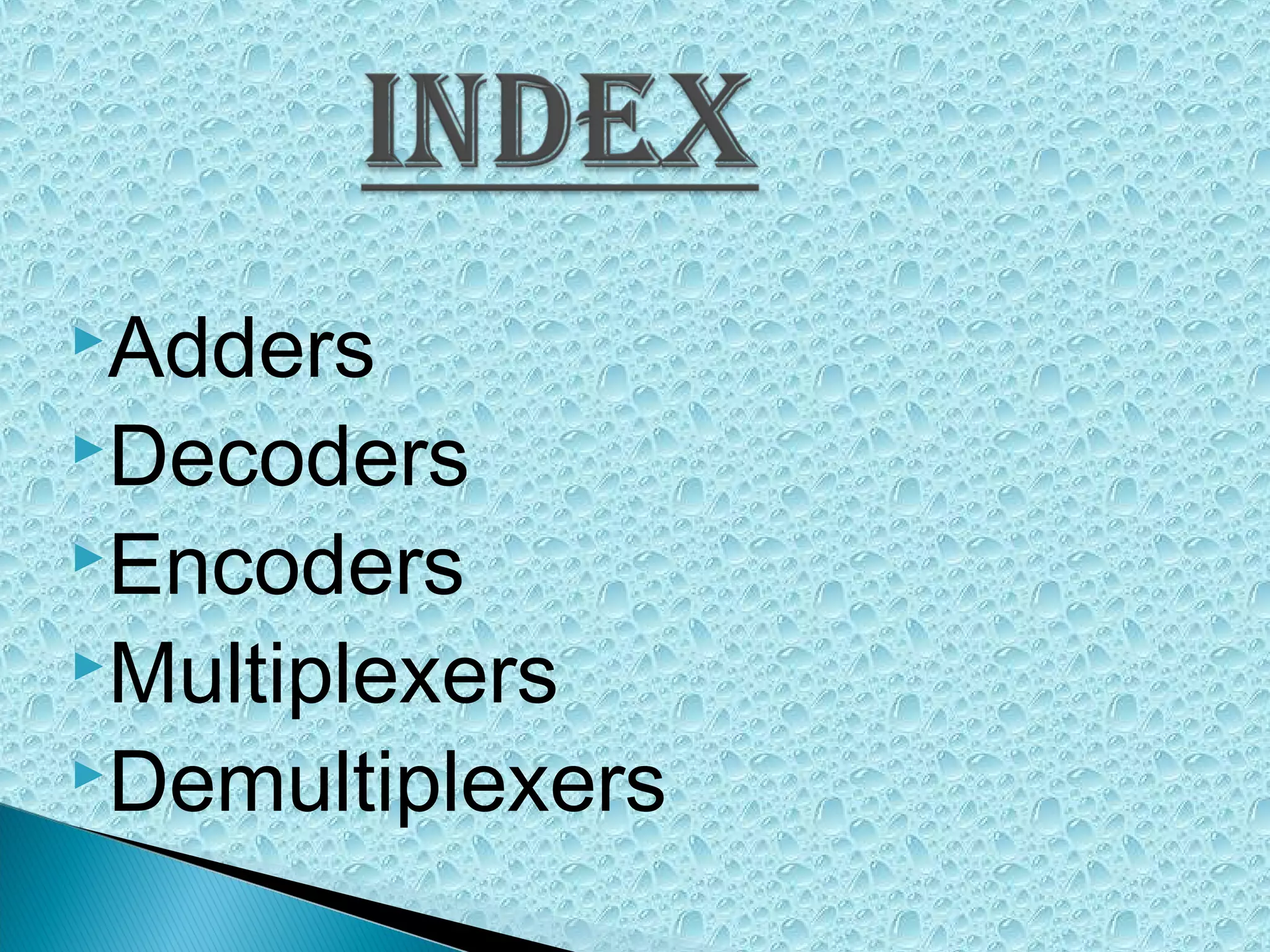 This document discusses several digital logic components including adders, decoders, encoders, multiplexers, and demultiplexers. It provides details on half-adders and full-adders which perform addition of binary digits. Decoders and encoders are described as performing the opposite conversion between n-bit inputs and 2n output lines. Multiplexers and demultiplexers are also covered, with multiplexers having several data inputs and one output selected by an input, and demultiplexers reversing this function to distribute data across multiple outputs.