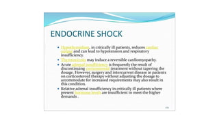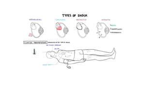 2. Shock is classified into five main types: hypovolemic, cardiogenic, obstructive, distributive, and endocrine.